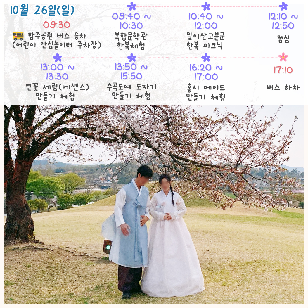 10:40 ~ 12:00 | 80분 | 말이산 고분군 | 한복 피크닉 |